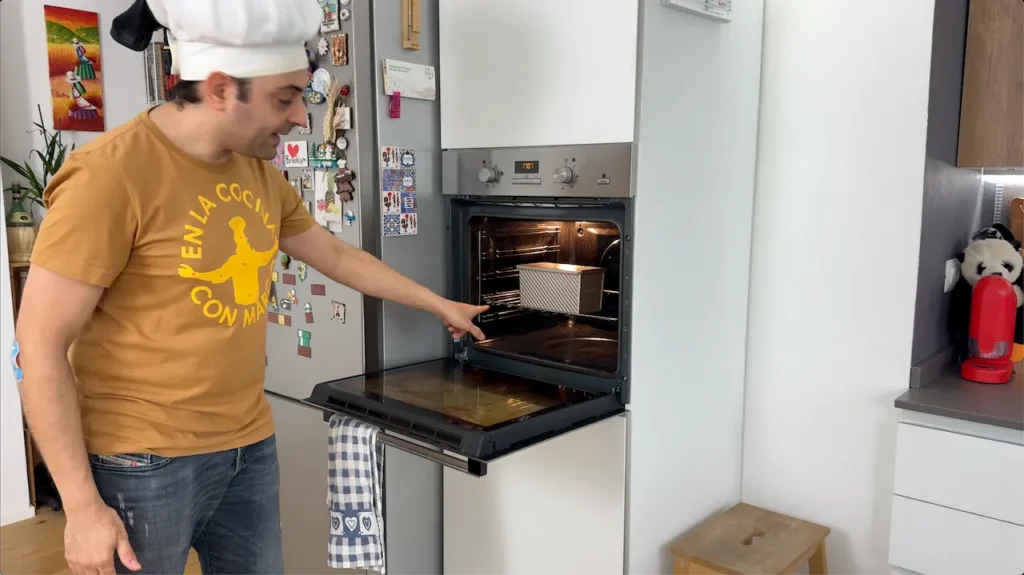 • Cuando la masa esté leudada tapamos el molde y pasamos a hornear en el horno precalentado a 190º C durante 40 minutos.